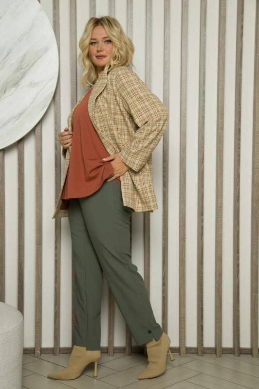 Шикарные брюки выполнены из ткани средней плотности, на "хлипкая", но и не  "толстая", умеренно эластичная. Очень приятна на ощупь, внутри , как бархатистая.