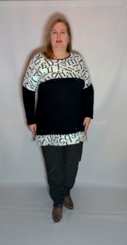 Полочка сложнокроенная: кокетка и нижняя планка из трикотажа альпака, декор термостразами