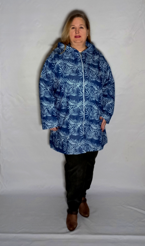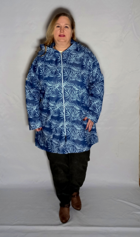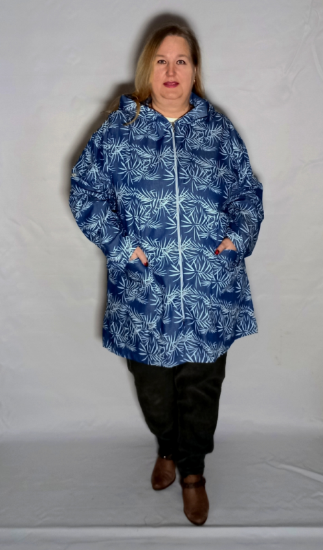 СТильный кардиган, пыльник выполнен из рубашечной джинсы. Принт прорезиненный, гладится без проблем, не облетает, осыпается, немного выступает над поверхностью ткани