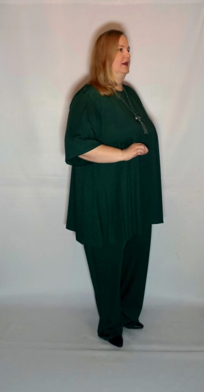 Простой по крою, но элегантный и красивый костюм выполнен из трикотаж вискоза-холодок. Трикотаж плотный ( не тонкий, как Китайский), очень эластичный, шелковистый, не мнется, хорошо дышит и пропускает влагу.