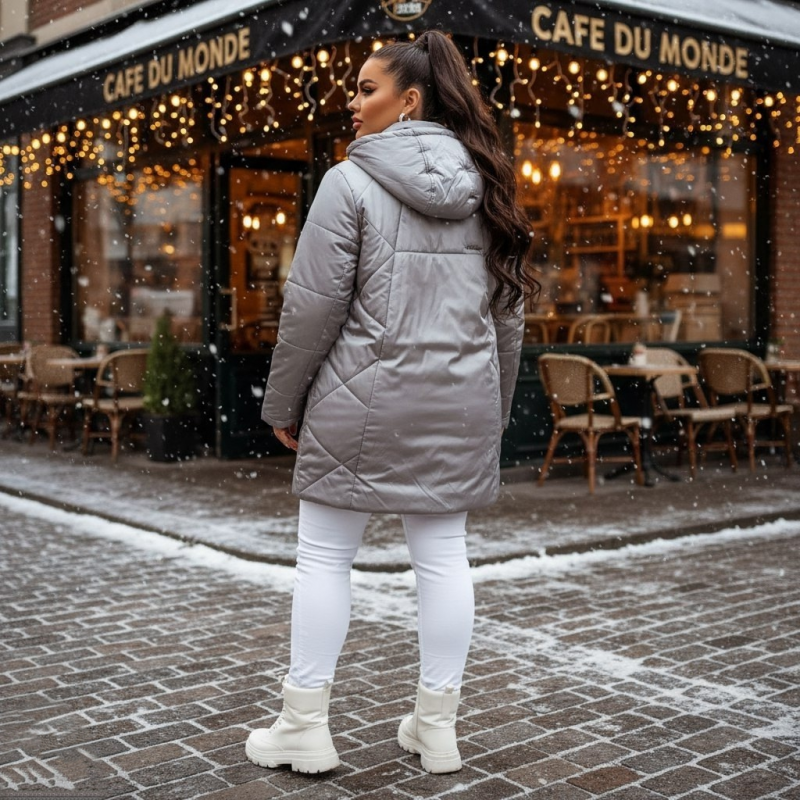 Стильная, теплая, но при этом не тяжелая, зимняя куртка выполнена из плащевой ткани с неброским металлическим оттенком. Утеплитель верблюжья шерсть.